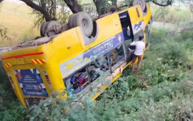 मेरठ में पलटी स्कूल बस, 10 बच्चे घायल, जांच में जुटी पुलिस