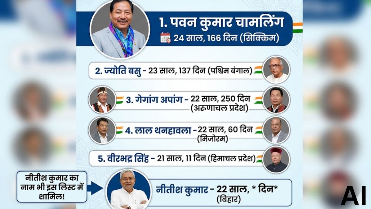 सबसे लंबे समय तक CM रहने वालों में नीतीश कुमार की एंट्री, लेकिन नंबर 1 पर कौन? चौंका देगी ये सूची!