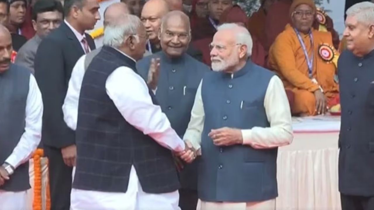 संसद परिसर में एकता की तस्वीर, अंबेडकर जयंती पर साथ दिखे मोदी-खरगे