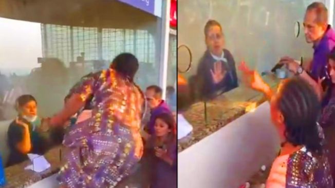 ऑनलाइन वायरल इस वीडियो में महिला को बिना जूते, सर्विस विंडो के फ्रेम को पकड़कर काउंटर के ऊपर चढ़ते हुए देखा जा सकता है। पास खड़े ग्राउंड स्टाफ उसे शांत कराने की कोशिश करते रहते हैं और बार-बार अनुरोध करते हैं कि वह काउंटर से नीचे उतर जाए। महिला बार-बार भोजन, जानकारी और जरूरी मदद की मांग करती है।